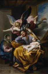 | Keywords: El sueño de San José (Museo del Prado).jpg El lienzo que representa el momento en que San José fue avisado mientras dormía de que huyera a Egipto para proteger al niño Jesús que se halla en su regazo de la matanza ordenada por el rey Herodes con el propósito de asesinar al Mesías enviado por Dios La Virgen María aparece a la izquierda del lienzo contemplando la escena y este cuadro es considerado por algunos autores como una de las obras de temática religiosa más importantes del periodo de la primera madurez valenciana de Vicente López Portaña que era oriundo de Valencia 1805 oil canvas Size cm 118 187 Institution Museo del Prado https //www museodelprado es/coleccion/obras-de-arte search vicente lopez cidoc p14_carried_out_by pm author ecidoc p131_E82_p102_has_title lópez portaña vicente object history exhibition history credit line accession number P07735 https //content1 museodelprado es/imagenes/Documentos/imgsem/93/933b/933bf488-5283-40e4-bc82-2c4296dbf2e7/343b30fe-4b43-40f9-a30e-9a525c7b6c81 jpg PD-old-100 Paintings of the Dream of Saint Joseph Religious paintings by Vicente López Portaña Paintings by Vicente López Portaña in the Prado Museum 19th-century paintings in the Prado Museum Uploaded with UploadWizard |