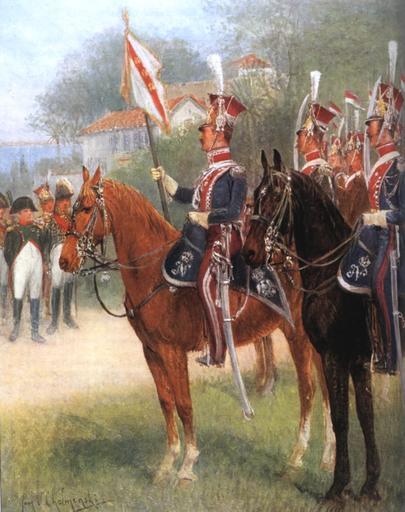 | Keywords: Elba Squadron of 1er régiment de chevau-légers lanciers polonais de la Garde impériale.PNG En Elba Squadron of the 1st Light Horse Regiment Polish Lancers of the Imperial Guard L'Armée du Duché de Varsovie par Jan V Chelminski Paris 1913 painting Jan Chełmiński 1851-1925 < 1925 PD-Art Polish troops of the Grande Armée Paintings of Napoleon I Jan Chełmiński Elba Chevau-légers and Chasseurs Lanciers polonais de la Garde impériale Flags of Elba | ||||