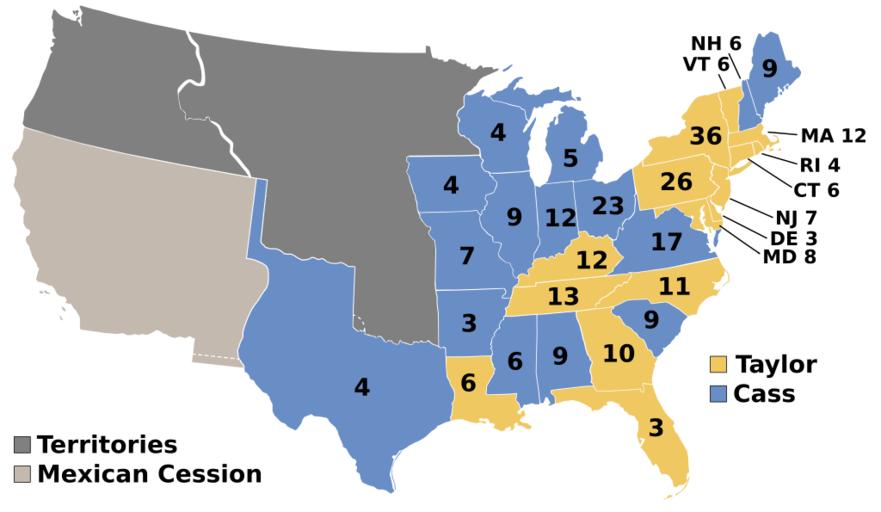| Keywords: ElectoralCollege1848.svg US presidential election maps SVG Electoral college map for the 1848 United States presidential election This image was adapted from File ElectoralCollege1964 svg itself based off File Blank_US_Map svg using data from File 1848 Electoral Map png File United States 1848-02-1848-05 png File Wpdms oregon territory 1848 png the original version uploaded by AndyHogan14 and the National Atlas of the United States Cg-realms current <br />AndyHogan14 original 2008-12-31 Original ; 2009-01-28 Current File 1848 Electoral Map png 1848 U S presidential election maps |