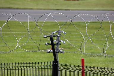 | Keywords: electric fence wire barbed security barrier power safety voltage criminal boundary shock protection current forbidden protect closed enclosure prohibited safe prison jail enclose wired danger keep out metal sharp razor system crime deterrent defense post private perimeter border guard secure dangerous trespass prevent |