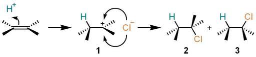 Keywords: Electrophilic addition of HCl.png Mechanism for electrophilic addition of HCl to alkenes Source Selfmade Date 16 June 2006 Made with ChemDraw 2006-06-15 own assumed Su-no-G Functional group interconversions Reactions of hydrogen chloride