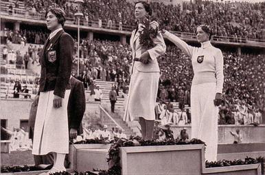 | Keywords: Elek Ilona Berlin (1936).jpg hu Elek Ilona a berlini 1936 olimpia bajnoka az eredményhirdetésen kezében az ajándék tölgyfacsemetével 1 Elek Ilona HUN 2 Helene Mayer GER 3 Ellen Müller-Preis AUS http //www bibl u-szeged hu/ha/sport/olimpiak/elek2 jpg Author 1936 http //commons wikimedia org/wiki/File Elek_Ilona jpg Fencing at the 1936 Summer Olympics Ellen Preis Ilona Elek Helene Mayer Podiums at the Olympic Games 1936 Olympic Oaks Hitler salutes PD-old | ||||