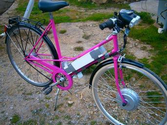 | Keywords: Elektro-fahrrad-Umbau.jpg en Motobecane frame ca 1988 Nexus-8-Hub-Speeds Litium-Ion-akkumulator placed inbetween the lady-type frame 250 Watt-24 Volt chinese e-bike front wheel motorset Li-akku used from old laptop akkumulators de Motobacane Rahmen ca 1988 Baujahr Nexus-8-Gang-Nabenschaltung Lithiumionenakku im Damenrahmen platziert 250 Watt-24 Volt China-E-Bike-Motorumbausetset für Frontmotor Nutzung alter Laptop-Lithium-Akkus own Andreas Lemmer Portugal 2012-12-12 Electrically-powered bicycles Cc-zero |