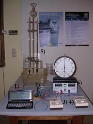 | Keywords: Elektrolyseapparat.jpg Electrolysis apparatus 1 PDA for manual logging 2 Switch for activating process 3 Amperemeter 4 Voltmeter 5 The apparatus filled with 1/3 SO<sub>2</sub>H<sub>2</sub> and 2/3 H<sub>2</sub> 6 Power Supply stabilized 2005-12-04 own assumed HardDisk Water electrolysis |
