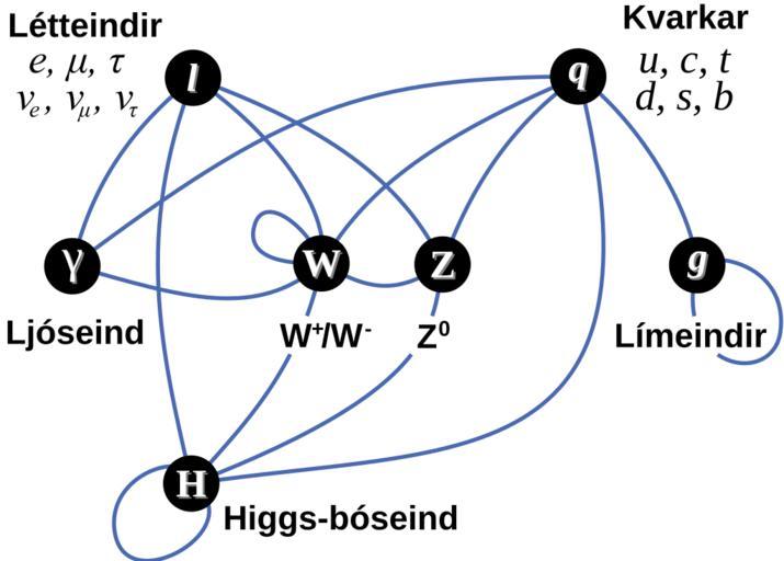 Keywords: Elementary particle interactions (is).svg A diagram summarizing the tree-level interactions between elementary particles described in the Standard Model Vertices darkened circles represent types of particles and edges blue arcs connecting them represent interactions that can take place The organization of the diagram is as follows the top row of vertices leptons and quarks are the matter particles; the second row of vertices photon W/Z gluons are the force mediating particles; and the bottom row is the Higgs boson Elementary_particle_interactions svg 2009-03-10 03 28 UTC Elementary_particle_interactions svg en User TriTertButoxy User Stannered derivative work BiT <span class signature-talk >talk</span> Translated lables into Icelandic BiT Elementary_particle_interactions svg PD-user-en PD-user-w original upload log This image is a derivative work of the following images File Elementary_particle_interactions svg licensed with PD-user-en PD-user-w 2008-02-24T15 59 55Z Stannered 775x555 35614 Bytes <nowiki>adding W self-interaction</nowiki> 2008-02-03T17 52 30Z Stannered 775x555 37690 Bytes <nowiki>MediaWiki has no unicode TNR equivalent when will they install FreeSerif </nowiki> 2008-02-03T17 51 31Z Stannered 775x555 22110 Bytes <nowiki> A diagram summarizing the tree-level interactions between elementary particles described in the Standard Model Vertices darkened circles represent types of particles and edges blue arcs connec</nowiki> Uploaded with derivativeFX Standard Model physics Icelandic language Higgs boson |