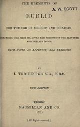 | Keywords: Elements title page.jpg This is the title page of The Elements of Euclid for the Use of Schools and Colleges 1872 It was translated by Issac Todhunter The image comes from Archive org Archive org Issac Todhunter The Elements of Euclid for the Use of Schools and Colleges PD-old |