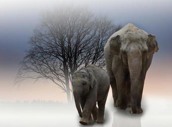 Keywords: elephant animal mammal proboscidea baby elephant close african bush elephant tusks proboscis wild animals safari pachyderm wilderness nature friendship photo montage composing