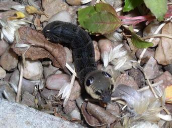 Keywords: Elephant Hawk Moth Caterpillar.JPG Image of an Elephant Hawk Moth caterpillar found feeding on a Fuschia 2006-08-06 own assumed Mjh233 Deilephila elpenor caterpillar