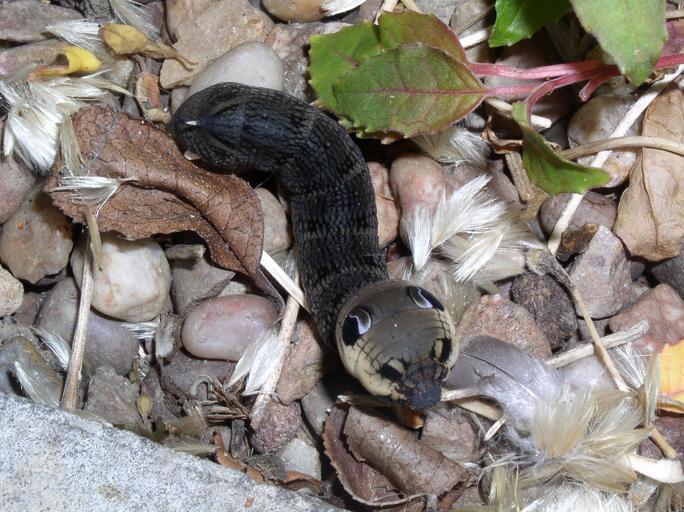 MAKE A MEME View Large Image Elephant Hawk Moth Caterpillar.JPG Image of an Elephant Hawk Moth caterpillar found feeding on a Fuschia 2006-08-06 own assumed Mjh233 Deilephila elpenor caterpillar