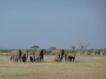 Keywords: elephants family wildlife african kenya wild big mammal animal safari large savannah tusk amboselli landscape