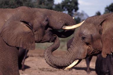 Keywords: elephants trunks tusks mouths ivory mammals large pachyderms portrait wildlife african nature skin