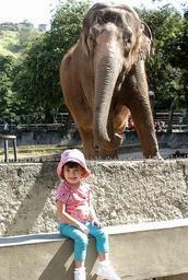 Keywords: Elephantsfrontgirlriodejaneiro.jpg Girl at Zoo own 2005-05-27 Rafaeloliveira personality rights People with elephants Elephas maximus in zoos Females with animals People with shoes Sitting people