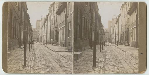 | Keywords: pennsylvania philadelphia row houses dwellings cobblestone streets restaurants elfreth’s alley elfreth’salley stereographs gelatin silver prints gelatinsilverprints View of cobblestone street flanked by small rowhouses looking west toward Second Street. Shows a little girl halfway down the street on the sidewalk near a group of pigeons. Also includes signs for "Coach House Restaurant" and "Olde Alley ... Poor Richard" in the distant background. Gelatin silver on stereograph mount. View of cobblestone street flanked by small rowhouses looking west toward Second Street. Shows a little girl halfway down the street on the sidewalk near a group of pigeons. Also includes signs for "Coach House Restaurant" and "Olde Alley ... Poor Richard" in the distant background. Gelatin silver on stereograph mount. |