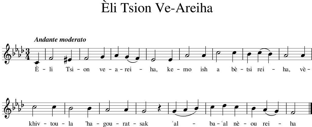 Keywords: Èli Tsion music sheet.svg en Eli Ziyyon music sheet fr Partition de Èli Tsion Ve-Areiha 2015-09-20 Eli Zion music sheet jpg 250 Tubezlob other versions atelier graphique cc-zero Uploaded with UploadWizard Jewish music