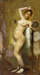 | Keywords: Eliseu Visconti - Nu 1895.jpg Artwork Creator Eliseu Visconti 1895 Oil on canvas cm 165 89 Institution Museu de Arte de São Paulo accession number 434 P object history LangSwitch Donated by João Santos and Rubem Martin Berta Doação João Santos e Rubem Martin Berta credit line EV monogram bottom left Museu de Arte de São Paulo http //masp art br/masp2010/acervo_detalheobra php id 389 info; http //masp art br/masp2010/upload_pic/original/0434 20P 202008 20Masp_0849 jpg file PD-old-auto 1944 Eliseu Visconti Brazilian paintings in the Museu de Arte de São Paulo 1890s paintings from Brazil 1895 oil on canvas paintings 19th-century oil paintings of standing women at full length Paintings of nude standing females in the 19th century |