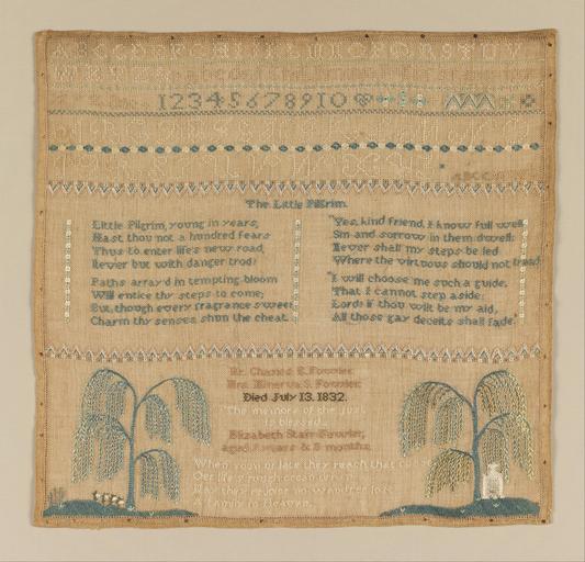 | Keywords: Elizabeth Starr Fowler - Sampler - Google Art Project.jpg 1822 1904 Elizabeth 6814936 Starr Fowler 1822 - 1904 /collection/cooper-hewitt-national-design-museum/artwork/sampler-elizabeth-starr-fowler/6835354/ 176721 Elizabeth Starr Fowler /artist/elizabeth-starr-fowler/12692375/ 12692375 /collection/cooper-hewitt-national-design-museum/ Cooper-Hewitt National Design Museum 3644669 http //www cooperhewitt org/ /collection/cooper-hewitt-national-design-museum/artwork/sampler-elizabeth-starr-fowler/6835354/ 1827 1827 Medium silk embroidery on linen foundationTechnique embroidered in stem cross detached chain eyelet and rococo stitches on plain weave foundation By 1935 American Art Galleries1935 - 1981 Gertrude M Oppenheimer1981 Cooper-Hewitt Museum 420 6835354 False 1827 1981-28-139 http //collection cooperhewitt org/view/objects/asitem/id/176721 Bequest of Gertrude M Oppenheimer Sampler 1820 1830 w440 x h420 cm 1827 False 1 04276985743381 Object sampler-elizabeth-starr-fowler Sampler s 440 H x W 41 9 x 43 8 cm 16 1/2 x 17 1/4 in Elizabeth Starr Fowler aged 9 years 8 months Medium silk embroidery on linen foundationTechnique embroidered in stem cross detached chain eyelet and rococo stitches on plain weave foundation By 1935 American Art Galleries1935 - 1981 Gertrude M Oppenheimer1981 Cooper-Hewitt Museum special url_id owFRSwR9gpBKJQ PD-old-100-1923 1904 Google Art Project works by Elizabeth Starr Fowler Textiles in the Cooper “Hewitt Smithsonian Design Museum 1820s samplers Google Art Project works in Cooper-Hewitt Smithsonian Design Museum 1827 works |