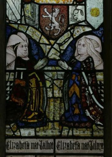 Keywords: elizabeth tilney elizabethtilney anne boleyn anneboleyn katheryn howard katherynhoward english nobility englishnobility portrait stained glass stainedglass henry viii henryviii henry vii henryvii england united kingdom unitedkingdom britain text Elizabeth Tilney, Countess of Surrey (before 1447 – 4 April 1497) was the first wife of Thomas Howard, 2nd Duke of Norfolk and the mother of Thomas Howard, 3rd Duke of Norfolk. She was the maternal grandmother of Anne Boleyn and the paternal grandmother of Catherine Howard, both queens consort of King Henry VIII. She was the maternal great-grandmother of Queen Elizabeth I of England. Elizabeth was born at Ashwellthorpe Manor, Norfolk, England, sometime before 1447. She was the daughter and heiress of Sir Frederick Tilney, of Ashwellthorpe, Norfolk, and Boston, Lincolnshire, by his wife Elizabeth Cheney, of Ditton, Cambridgeshire. Her father died when she was a young child. Sometime before 1453, Elizabeth's mother married her second husband, Sir John Saye of Sawbridgeworth, by whom she had two daughters, Anne Saye, who married Henry Wentworth, and Mary Saye, who married Sir Philip Calthorpe. Both marriages produced issue. Elizabeth's paternal grandparents were Sir Philip Tilney and Isabel Thorpe. Her maternal grandparents were Sir Laurence Cheney of Fen Ditton and Elizabeth Cockayne, widow of Sir Philip Butler. Elizabeth Cockayne was the daughter of Sir John Cockayne, Chief Baron of the Exchequer and Ida de Grey. Ida was a daughter of Welsh Marcher Lord Reginald Grey, 2nd Baron Grey de Ruthyn and Alianore Le Strange. Through her mother, Ida was a direct descendant of Welsh Prince Gruffydd II ap Madog, Lord of Dinas Bran and his wife Emma de Audley. Elizabeth was co-heiress to the manors of Fisherwick and Shelfield in Walsall, Staffordshire by virtue of her descent from Roger Hilary, Chief Justice of the Common Pleas who had died in 1356. She married her first husband Sir Humphrey Bourchier around 1466. He was the son of John Bourchier, 1st Lord Berners and Margery Berners. The marriage produced a son John Bourchier, 2nd Lord Berners and two daughters. Sir Humphrey was killed at the Battle of Barnet on 14 April 1471 fighting on the Yorkist side.[4] Elizabeth married her second husband Thomas Howard, Earl of Surrey on 30 April 1472. On 22 August 1485 his father John Howard, 1st Duke of Norfolk was killed at the Battle of Bosworth while fighting for his king Richard III who was also his close friend and companion. Thomas was wounded in the battle and imprisoned for several years, his right to ascend to the dukedom of Norfolk being forfeit. He would not gain the title until 1514. After his Earldom and estates were restored to him, he continued in the service of the Tudor king Henry VII. The marriage produced nine children including Thomas Howard, 3rd Duke of Norfolk, Elizabeth Howard, mother of Anne Boleyn, and Lord Edmund Howard, father of Catherine Howard. Elizabeth Tilney died on 4 April 1497. She never held the title of Duchess of Norfolk. Four months after Elizabeth's death, Thomas Howard married secondly, her cousin Agnes Tilney, by whom he had eight more children. This stained glass window is in Long Melford Church, Suffolk. Elizabeth Tilney, Countess of Surrey (before 1447 – 4 April 1497) was the first wife of Thomas Howard, 2nd Duke of Norfolk and the mother of Thomas Howard, 3rd Duke of Norfolk. She was the maternal grandmother of Anne Boleyn and the paternal grandmother of Catherine Howard, both queens consort of King Henry VIII. She was the maternal great-grandmother of Queen Elizabeth I of England. Elizabeth was born at Ashwellthorpe Manor, Norfolk, England, sometime before 1447. She was the daughter and heiress of Sir Frederick Tilney, of Ashwellthorpe, Norfolk, and Boston, Lincolnshire, by his wife Elizabeth Cheney, of Ditton, Cambridgeshire. Her father died when she was a young child. Sometime before 1453, Elizabeth's mother married her second husband, Sir John Saye of Sawbridgeworth, by whom she had two daughters, Anne Saye, who married Henry Wentworth, and Mary Saye, who married Sir Philip Calthorpe. Both marriages produced issue. Elizabeth's paternal grandparents were Sir Philip Tilney and Isabel Thorpe. Her maternal grandparents were Sir Laurence Cheney of Fen Ditton and Elizabeth Cockayne, widow of Sir Philip Butler. Elizabeth Cockayne was the daughter of Sir John Cockayne, Chief Baron of the Exchequer and Ida de Grey. Ida was a daughter of Welsh Marcher Lord Reginald Grey, 2nd Baron Grey de Ruthyn and Alianore Le Strange. Through her mother, Ida was a direct descendant of Welsh Prince Gruffydd II ap Madog, Lord of Dinas Bran and his wife Emma de Audley. Elizabeth was co-heiress to the manors of Fisherwick and Shelfield in Walsall, Staffordshire by virtue of her descent from Roger Hilary, Chief Justice of the Common Pleas who had died in 1356. She married her first husband Sir Humphrey Bourchier around 1466. He was the son of John Bourchier, 1st Lord Berners and Margery Berners. The marriage produced a son John Bourchier, 2nd Lord Berners and two daughters. Sir Humphrey was killed at the Battle of Barnet on 14 April 1471 fighting on the Yorkist side.[4] Elizabeth married her second husband Thomas Howard, Earl of Surrey on 30 April 1472. On 22 August 1485 his father John Howard, 1st Duke of Norfolk was killed at the Battle of Bosworth while fighting for his king Richard III who was also his close friend and companion. Thomas was wounded in the battle and imprisoned for several years, his right to ascend to the dukedom of Norfolk being forfeit. He would not gain the title until 1514. After his Earldom and estates were restored to him, he continued in the service of the Tudor king Henry VII. The marriage produced nine children including Thomas Howard, 3rd Duke of Norfolk, Elizabeth Howard, mother of Anne Boleyn, and Lord Edmund Howard, father of Catherine Howard. Elizabeth Tilney died on 4 April 1497. She never held the