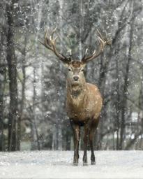 Keywords: elk winter snow nature wildlife wild animal deer forest mammal natural male brown outdoors canada winter scene