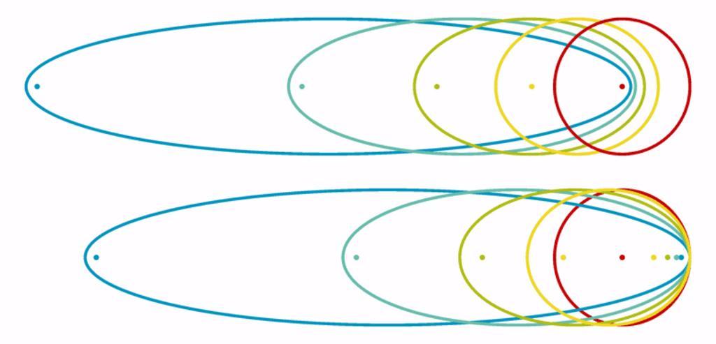 Keywords: Ellipse set 1-2.png en The combination of File Ellipse_set_2 png and File Ellipse_set_1 png <br> A set of affinitive ellipses with the same length of minor axis derivated from the red circle The dots are at the focus points <br> Above The ellipses are slided to the positions where one of their focus points fit to the center of the circle The decreasing of the focus length visibly follows the increasing of the eccentricity or of the rate of the major and minor axes <br> Below The same ellipses slided to be tangent of the circle from inside own Orion 8 2011-03-30 <gallery widths 60px heights 30px perrow 3> File Ellipse_set_1 png File Ellipse_set_2 png File Ellipse_set_3 png </gallery> Cc-zero Ellipses |