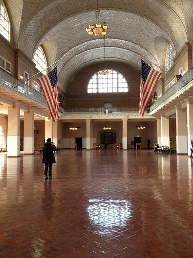 Keywords: ellis island usa new york entrance hall immigration station flag