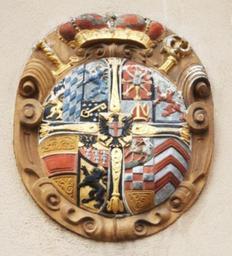 | Keywords: Ellwangen Pfarrhaus Wappen.jpg Erbauerwappen am einstigen Pfarrhaus der Marienkirche die ursprünglich die Pfarrkirche der Stadtbewohner war während die Stiftskirche die Eigenkirche der Fürstlichen Propstei war 1717 erbaut unter Fürstpropst Franz Ludwig von der Pfalz 1694-1732 als Pfarr- und Dekanatshaus ehemaliger Ort der Kapitelsbibliothek später Stadtpfarrhaus heute Haus der Justizreferendare Das Wappen ist im Feld optisch ganz links unten falsch bemalt der rote Balken müsste schwarz sein own photograph by Veit Feger 2009-08 Photo Veit Feger Written permission by the author Veit Feger to license as Public Domain 2009081010025951 130px Veit Feger Franz Ludwig von Pfalz-Neuburg Sculptures in Ellwangen Reliefs of coats of arms in Ostalbkreis Derivatives of the Coat of arms of Ellwangen priory Derivatives of the Coat of arms of Prüm Abbey Derivatives of the Coat of arms of the Teutonic Order Derivatives of the Coat of arms of Trier diocese Derivatives of the Coat of arms of Worms diocese Derivatives of the Coat of arms of Wrocław diocese Photos by Veit Feger Wrongly colored coats of arms |