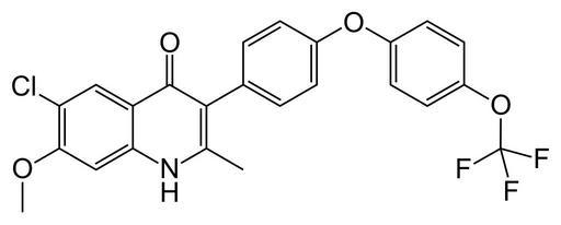 | Keywords: ELQ-300.svg Skeletal formula of ELQ-300 6-chloro-7-methoxy-2-methyl-3- 4-4- trifluoromethoxy phenoxyphenyl quinolin-4 1H -one Created using http //www acdlabs com/download/chemsk html ACD/ChemSketch 12 0 and Inkscape Optimized with vim Own work after http //www google com/patents/US20120010237 US patent application 20120010237 2013-03-20 Fvasconcellos Quinolones Antimalarial agents Trifluoromethyl ethers | ||||
