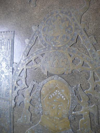 Keywords: Elsing Church chancel brass2.JPG en Detail from the replica brass memorial to Sir Hugh Hastings at Elsing Church Norfolk England own Charlesdrakew 2010-08-17 St Mary's Elsing interior