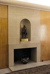 Keywords: eltham palace south london study cautauld family home art deco fire surround bronze statuette ww1 soldier