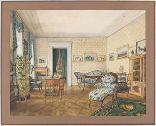 | Keywords: Emanuel Stöckler - Drawing Room of a Sportsman - Google Art Project.jpg 1819 1893 Emanuel 6860056 Stöckler 1819 - 1893 /collection/cooper-hewitt-national-design-museum/artwork/drawing-room-of-a-sportsman-emanuel-stockler/6842417/ 229961 Emanuel Stöckler /artist/emanuel-stockler/12692486/ 12692486 /collection/cooper-hewitt-national-design-museum/ Cooper-Hewitt National Design Museum 3644669 http //www cooperhewitt org/ 3/12/2012 5 38 16 PM /collection/cooper-hewitt-national-design-museum/artwork/drawing-room-of-a-sportsman-emanuel-stockler/6842417/ 1856 1856 Brush and watercolor gouache on white wove paper Eugene V Thaw Collection; Dorotheum Vienna March 26 2004 lot 183 6842417 False 1856 3/25/2012 1 36 52 PM 2007-27-61 http //collection cooperhewitt org/view/objects/asitem/id/229961 Thaw Collection Drawing 1850 1860 1856 False 1 23671497584541 Object drawing-room-of-a-sportsman-emanuel-stockler Drawing Room of a Sportsman d Gail S Davidson et al House Proud Nineteenth-Century Watercolor Interiors from the Thaw Collection New York Cooper-Hewitt National Design Museum Smithsonian Institution 2008 125 pl 61 Old frame H x W x D 49 5 x 55 9 x 5 1 cm 19 1/2 x 22 x 2 in Sheet 35 1 x 44 6 cm 13 13/16 x 17 9/16 in New York NY - Cooper-Hewitt National Design Museum Smithsonian Institution House Proud Nineteenth-Century Watercolor Interiors from the Thaw Collection August 12 2008-January 25 2009 Brush and watercolor gouache on white wove paper White wove paper Eugene V Thaw Collection; Dorotheum Vienna March 26 2004 lot 183 Lower left Stockler 1856 special url_id WgHZadM19EXLTw PD-old-100-1923 1893 Emanuel Stöckler Google Art Project works by Emanuel Stöckler Watercolors of building interiors in the Cooper “Hewitt Smithsonian Design Museum Google Art Project works in Cooper-Hewitt Smithsonian Design Museum 1850s drawings 1850s interiors in art |