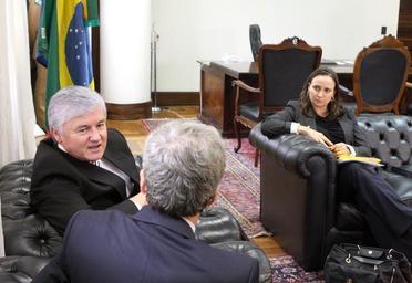 | Keywords: people groupshot O presidente da Assembleia Legislativa do Paraná, Valdir Rossoni, recebeu o embaixador da França no Brasil, Yves Saint-Geours, na manhã desta terça-feira (15). Participaram da visita o cônsul-geral da França, Sylvain Itté, e a cônsul-honorária da França em Curitiba, Emilie Dely. Foto: Nani Gois / Assembleia Legislativa do Paraná O presidente da Assembleia Legislativa do Paraná, Valdir Rossoni, recebeu o embaixador da França no Brasil, Yves Saint-Geours, na manhã desta terça-feira (15). Participaram da visita o cônsul-geral da França, Sylvain Itté, e a cônsul-honorária da França em Curitiba, Emilie Dely. Foto: Nani Gois / Assembleia Legislativa do Paraná |