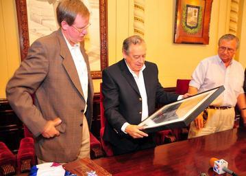 | Keywords: david nelson davidnelson paysandú uruguay embajador usa embajadorusa paylana azucitrus cítricos usembassymvd bertil bentos bertilbentos ciudad de paysandú ciudaddepaysandú chajá people indoor El Embajador David Nelson entrega un obsequio al Intendente Bertil Bentos. El martes 7 de diciembre de 2010, el embajador de estados Unidos en Uruguay, David Nelson, realizó una visita de cortesía al departamento de Paysandú, culminando de esta forma las visitas a toda la región litoral del país. David Nelson arribó al aeropuerto internacional de Paysandú, acompañado por el Asesor de Asuntos Económicos de la embajada, Kevin Skillin y personal de la oficina de Cooperación de Defensa del gobierno estadounidense. Allí, fueron recibidos por el Intendente Bertil Bentos y autoridades de las fuerzas armadas uruguayas, para dar inicio a la agenda de actividades. [U.S. Embassy photo by Pablo Castro / Copyright info] El Embajador David Nelson entrega un obsequio al Intendente Bertil Bentos. El martes 7 de diciembre de 2010, el embajador de estados Unidos en Uruguay, David Nelson, realizó una visita de cortesía al departamento de Paysandú, culminando de esta forma las visitas a toda la región litoral del país. David Nelson arribó al aeropuerto internacional de Paysandú, acompañado por el Asesor de Asuntos Económicos de la embajada, Kevin Skillin y personal de la oficina de Cooperación de Defensa del gobierno estadounidense. Allí, fueron recibidos por el Intendente Bertil Bentos y autoridades de las fuerzas armadas uruguayas, para dar inicio a la agenda de actividades. [U.S. Embassy photo by Pablo Castro / Copyright info] |
