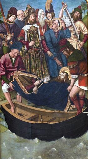 Keywords: Embarque en Jafa del cuerpo de Santiago el Mayor (Museo del Prado).jpg La obra representa el momento en que el cadáver del apóstol Santiago el Mayor que había sido decapitado en Jerusalén por orden del rey Herodes Agripa I fue enbarcado en Jafa por sus discípulos para llevarlo a Galicia donde según la tradición el apóstol había predicado en vida y donde acabarían finalmente sus restos que se supone que descansan en la catedral de Santiago de Compostela circa 1480 1490 Técnica mixta sobre tabla Size cm 73 159 Institution Museo del Prado Sala 051A https //www museodelprado es/coleccion/obra-de-arte/embarque-en-jafa-del-cuerpo-de-santiago-el-mayor/9f18a494-914e-4c89-a0ce-dac57787fd29 accession number P02668 https //content cdnprado net/imagenes/Documentos/imgsem/9f/9f18/9f18a494-914e-4c89-a0ce-dac57787fd29/5c366a34-de4c-4cbb-853a-f89e4308d868 jpg PD-old-100 Paintings of Saint James the Greater in Spain 15th-century paintings of Saint James the Greater Paintings by Martín Bernat in the Prado Museum 15th-century paintings in the Prado Museum 1490 paintings in Spain Ermine clothing in art |