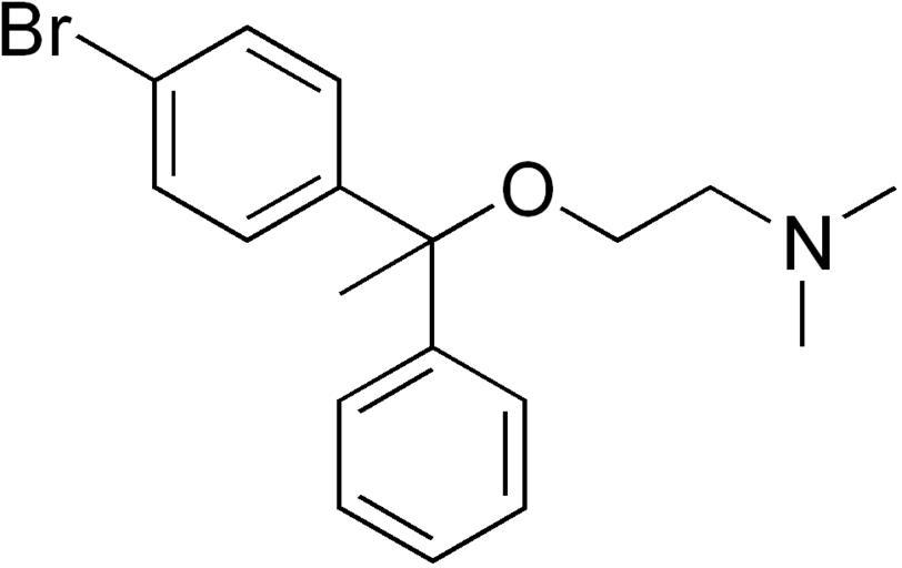 Keywords: Embramine.png Chemical structure of embramine Own 20 18 4 November 2008 UTC Edgar181 Anticholinergics Benzyl ethers Bromobenzenes Diphenylmethanes H1 receptor antagonists Methyl compounds Tertiary amines