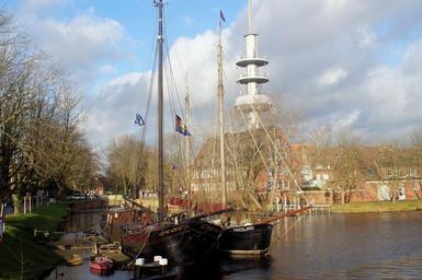 Keywords: emden port city tv tower water ships idyllic