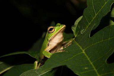 Keywords: emerald-eyed tree frog reptile portrait animal plant branch leaf tropical