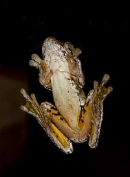 Keywords: emerald spotted tree frog webbed feet window glass black night native queensland australia