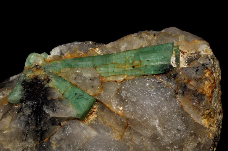 Keywords: Émeraude sur quartz (Chine).jpg Smaragd grün auf Quarz farblos Crystal of emerald green on quartz colorless cristaux de béryl var émeraude vert sur gangue de quartz incolore Huya W-Sn-Be deposit Pingwu beryl mine Huya village Mount Xuebaoding Pingwu County Mianyang Prefecture Sichuan Province China own 2009-01-13 Parent Géry Emerald on quartz Taken with Nikon D90 |