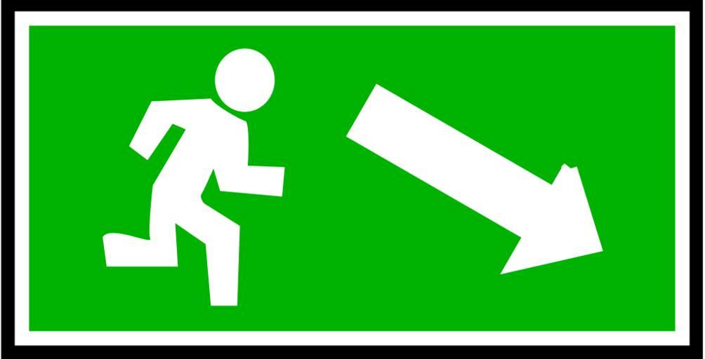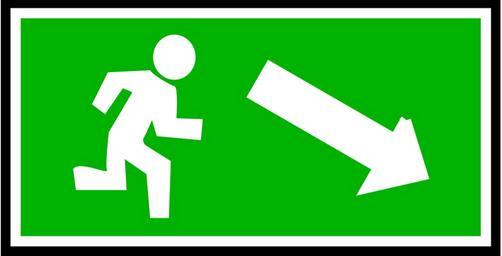 Keywords: emergency exit green white direction route down downward arrow pointing fire safety escape evacuation right