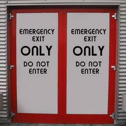Keywords: emergency exit output door closed exit no entry note shield warning attention
