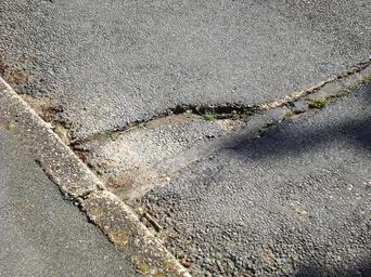Keywords: Emerging pot hole.JPG en An emerging pot hole in a road Own Editor5807 2009-05-08 Potholes Images by Editor5807 Roads on the Isle of Wight