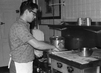 | Keywords: kansas city kansascity missouri mennonite board of missions mennoniteboardofmissions mennonite kitchen cook cooking food emerson gerber blackandwhite monochrome indoor black and white Emerson Gerber, Fairview, Michigan, served as a cook at the Home from October 1965 to June 1966. Citation: Mennonite Board of Missions Photographs, 1900-1971. IV-10-007.2. Mennonite Church USA Archives - Goshen. Goshen, Indiana. Emerson Gerber, Fairview, Michigan, served as a cook at the Home from October 1965 to June 1966. Citation: Mennonite Board of Missions Photographs, 1900-1971. IV-10-007.2. Mennonite Church USA Archives - Goshen. Goshen, Indiana. |