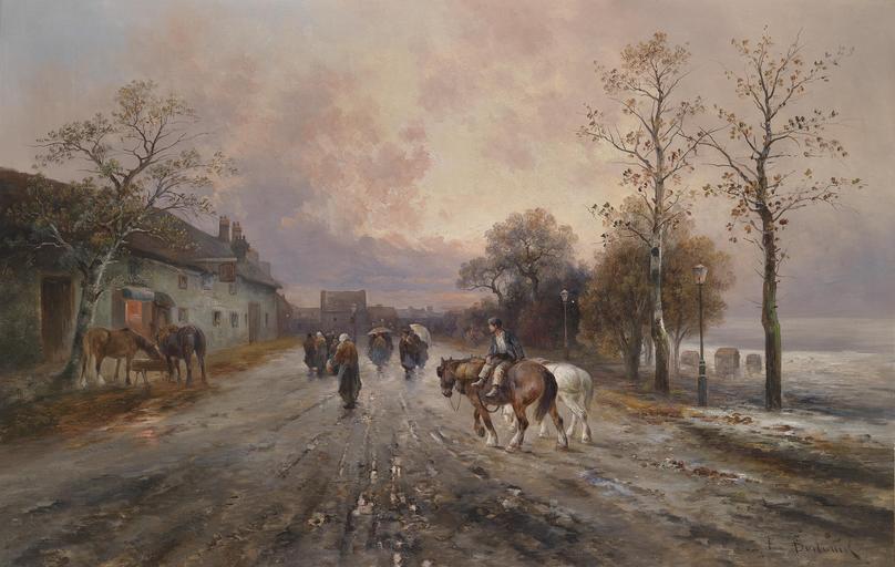 | Keywords: Emil Barbarini Abendstimmung über einer Dorflandschaft.jpg Abendstimmung über einer Dorflandschaft bzw Vorstadt E Rovien signature lower right oil canvas 68 x 105 5 cm http //www dorotheum com Dorotheum by 1930 Emil Barbarini 1855-1930 PD-old Images from Dorotheum Emil Barbarini Paintings of streets |