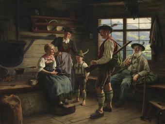 | Keywords: Emil Rau Rast des Jägers auf der Alm 1919.jpg Rast des Jägers auf der Alm Öl auf Leinwand Rechts unten signiert datiert und bezeichnet München 100 x 131 cm http //www kettererkunst de/ 1919 Creator Emil Rau PD-old-auto-1923 1937 Images from Ketterer Kunst Emil Rau 1919 paintings Hunters in art Tracht in art |