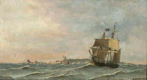 | Keywords: Emil Wilhelm Normann - En engelsk bark langs kysten af Christians ø.jpg Emil Normann 1798 “1881 En engelsk bark langs kysten af Christiansø 1833 10 oil canvas cm 16 29 object history The collection of Reinhard van Hauen Master baker credit line Signed and dated E N Octob 1833 accession number http //www arcadja com/auctions/en/normann_emil_wilhelm/artist/21317/ arcadja com PD-old-100 Emil Normann Christiansø 1833 paintings 19th-century sailing ships in paintings Paintings with years of production artist |