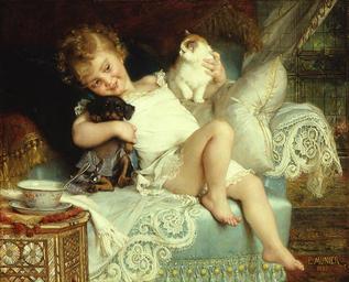 | Keywords: Émile Munier, 1885 - Favourite pets - Trois amis.jpg en Favourite pets; Oil on canvas 32 x 39 1/4 inches Signed and dated 1885 l r fr Trois amis 1885 https //iamachild wordpress com/tag/emile-munier/ Creator Émile Munier other versions Custom license marker 2014 11 17 PD-old-100 Émile Munier Uploaded with UploadWizard Paintings of girls with cats Paintings of girls with dogs | ||||