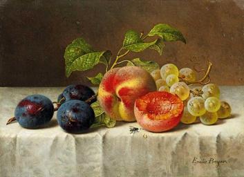 | Keywords: Emilie Preyer - Stillleben mit Pfirsichen, Pflaumen und Weintraube.jpg Artwork Creator Emilie Preyer de Stillleben mit Pfirsichen Pflaumen und Weintrauben oil canvas cm 19 26 5 object history signed 'Emilie Preyer' lower right http //www arcadja com/auctions/de/private/preyer_emilie/kunstwerken/23441/0/ Kunsthaus Lempertz via ARCADJA auction results other versions PD-old-auto-1923 1930 Emilie Preyer 19th-century still life paintings Still life paintings of fruits Images from Kunsthaus Lempertz |