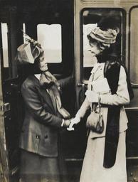 | Keywords: the women's library thewomenslibrary suffragette suffrage women hires 7JCC/O/02/086 Photograph, printed, paper, monochrome, Emmeline Pankhurst shaking hands with Constance Lytton in front of the door of a railway carriage; manuscript inscriptions on reverse 'Mrs Pankhurst Farewell at Waterloo', 'Lady Constance Lytton shaking hands with Mrs Pankhurst', 'Photo Standard' 7JCC/O/02/086 Photograph, printed, paper, monochrome, Emmeline Pankhurst shaking hands with Constance Lytton in front of the door of a railway carriage; manuscript inscriptions on reverse 'Mrs Pankhurst Farewell at Waterloo', 'Lady Constance Lytton shaking hands with Mrs Pankhurst', 'Photo Standard' |