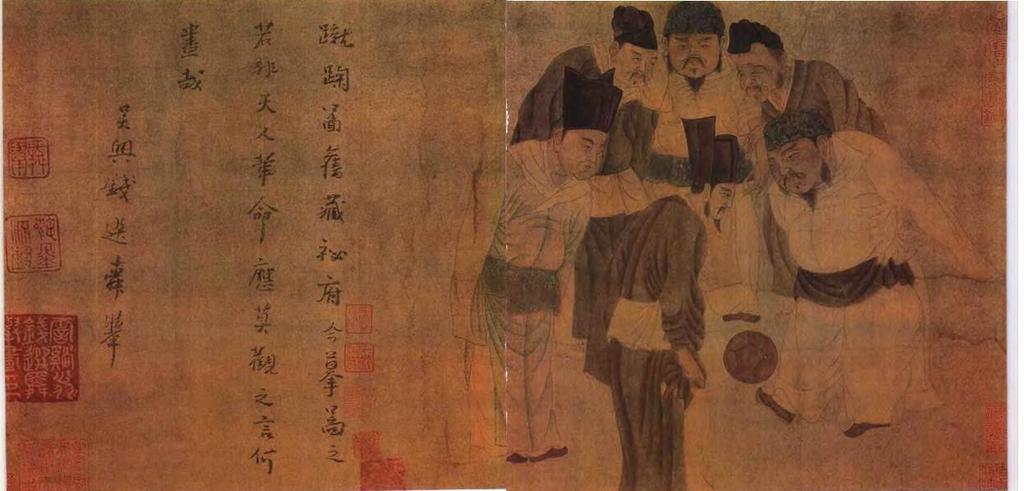 Keywords: Emperor Taizu play Cuju 2.JPG en Emperor Taizu Emperor Taizong prime minister Zhao Pu and other ministers were playing Cuju zh 宋太祖蹴鞠图 :体育史家认为这幅画上六人,分别为赵匡胤 赵光义 赵普 石守信 党进 楚昭辅 ( 由宋代画家苏汉臣 绘,原 已佚,此为元代画家钱 临摹之 ,现藏于上海博物馆) http //www ccnh cn/zt/zgtyyc/gdtyxm/cuju/3105127876 htm circa 1300 AD Creator Ch'ien Hsüan PD-old-100 150px Emperor Taizu Cuju Paintings of the Yuan Dynasty Qian Xuan