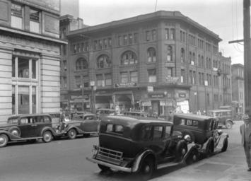 Keywords: blackandwhite monochrome architecture building outdoor black and white Empire Building, 601 West Hastings Street (NW corner West Hastings and Seymour Streets). September 10, 1934 photograph. Architect: C.O. Wickenden. Architectural Style: Richardsonian Romanesque Style. Built 1888. Demolished c.1983 to make way for the Price Waterhouse Centre (1983-84). The Empire Building featured a charming internal courtyard illuminated by a skylight and its original open-cage elevator. [City of Vancouver Archives; Stuart Thomson, photographer] Empire Building, 601 West Hastings Street (NW corner West Hastings and Seymour Streets). September 10, 1934 photograph. Architect: C.O. Wickenden. Architectural Style: Richardsonian Romanesque Style. Built 1888. Demolished c.1983 to make way for the Price Waterhouse Centre (1983-84). The Empire Building featured a charming internal courtyard illuminated by a skylight and its original open-cage elevator. [City of Vancouver Archives; Stuart Thomson, photographer]