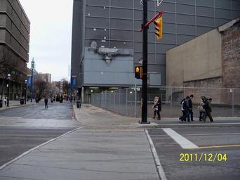 | Keywords: Empress Hotel building site at Yonge and Gould after fire (1).jpg Site of a historic old building on Yonge Street once the fire-damaged remains of the building were removed On the ground floor on the Gould Street Toronto side was an Indonesian restaurant named the Salad King Diners were asked to choose how hot they wanted their food on a scale of zero to ten chilis Most patrons were from nearby Ryerson University Own 2011 Geo Swan <span class signature-talk >talk</span> William Reynolds Block 2011 in Toronto |